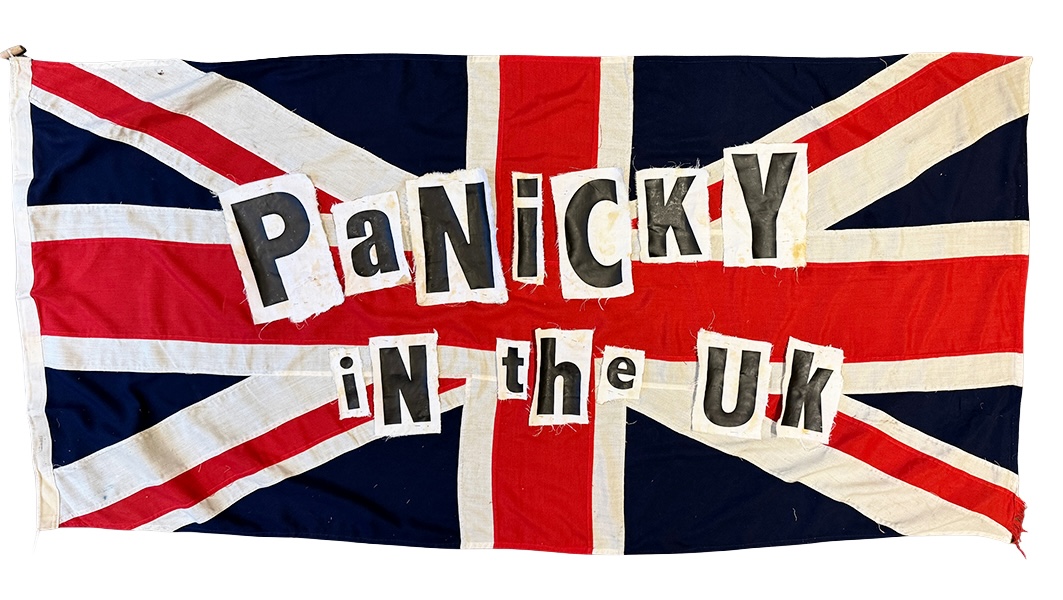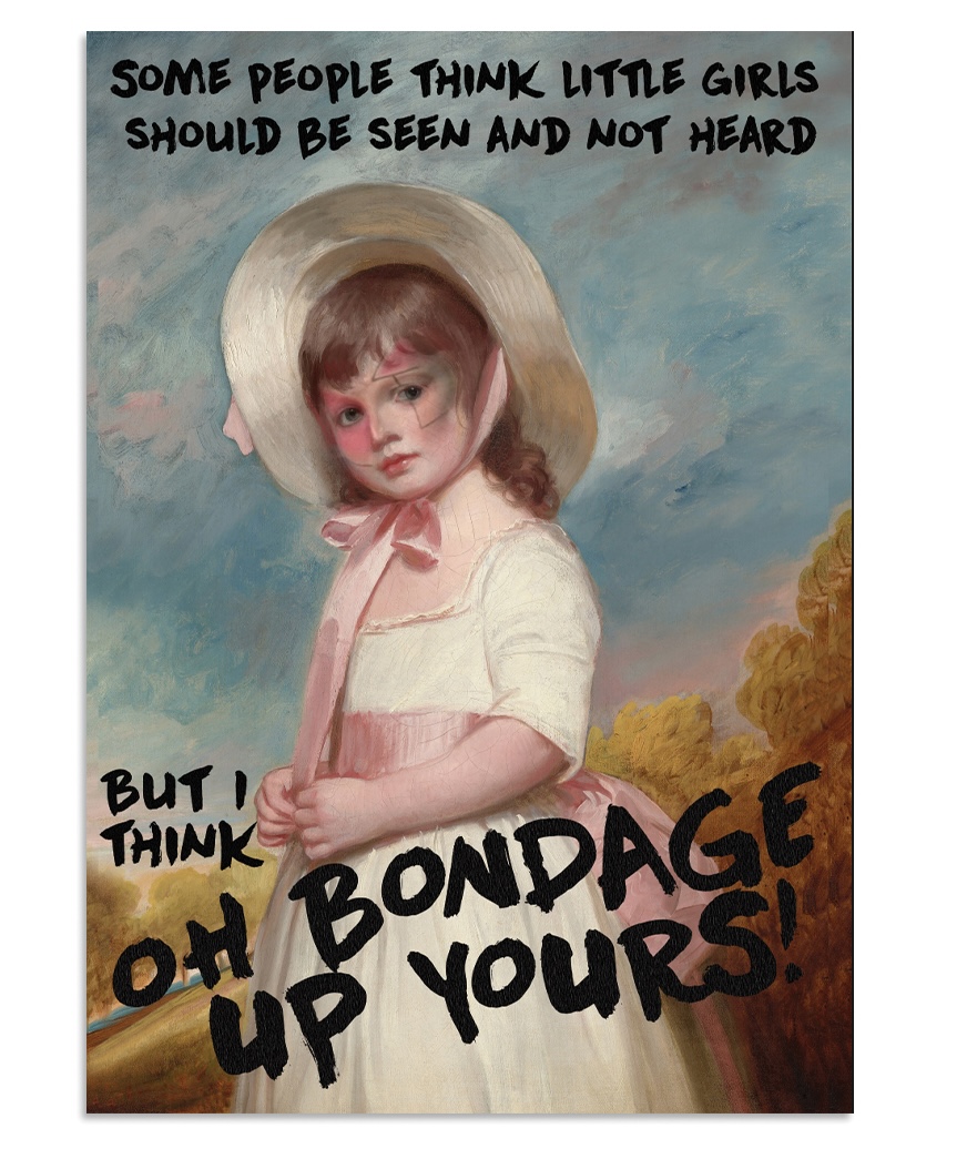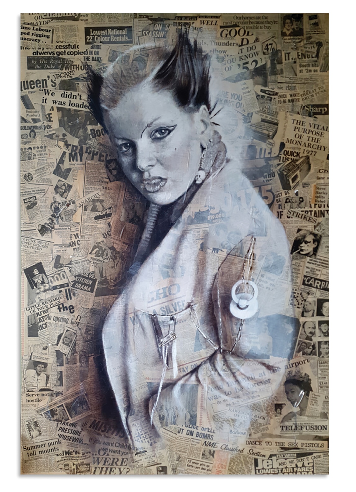 The artworks below come from an exhibition celebrating 50 years of punk, curated by Haus of Lucy. Lucy sought out artists who embody punk attitude. It features John Lydon; Gee Vaucher of art collective and punk band Crass; and the late Jamie Reid, the visual artist whose artwork for Never Mind the Bollocks… and God Save the Queen helped define punk.