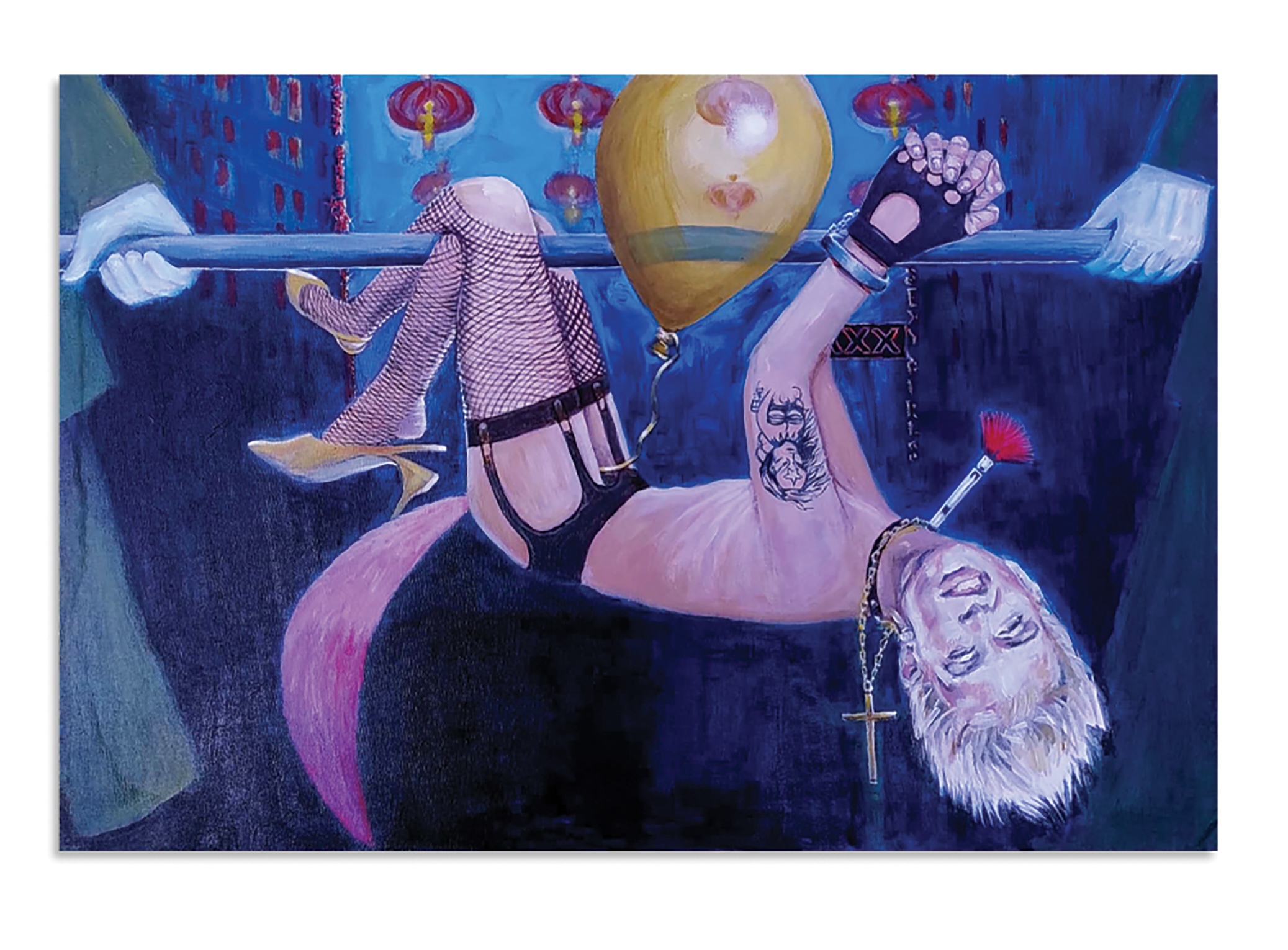 “That legendary (though it could be an urban myth?) 1989 night in Bangkok; when after partying for three weeks continuously and when the hotel he was staying in tried but failed to evict him, Billy Idol had to be shot with a tranquilizer gun by the authorities to bring the party to an end. The painting is called SHOT IN THE CITY TONIGHT.”