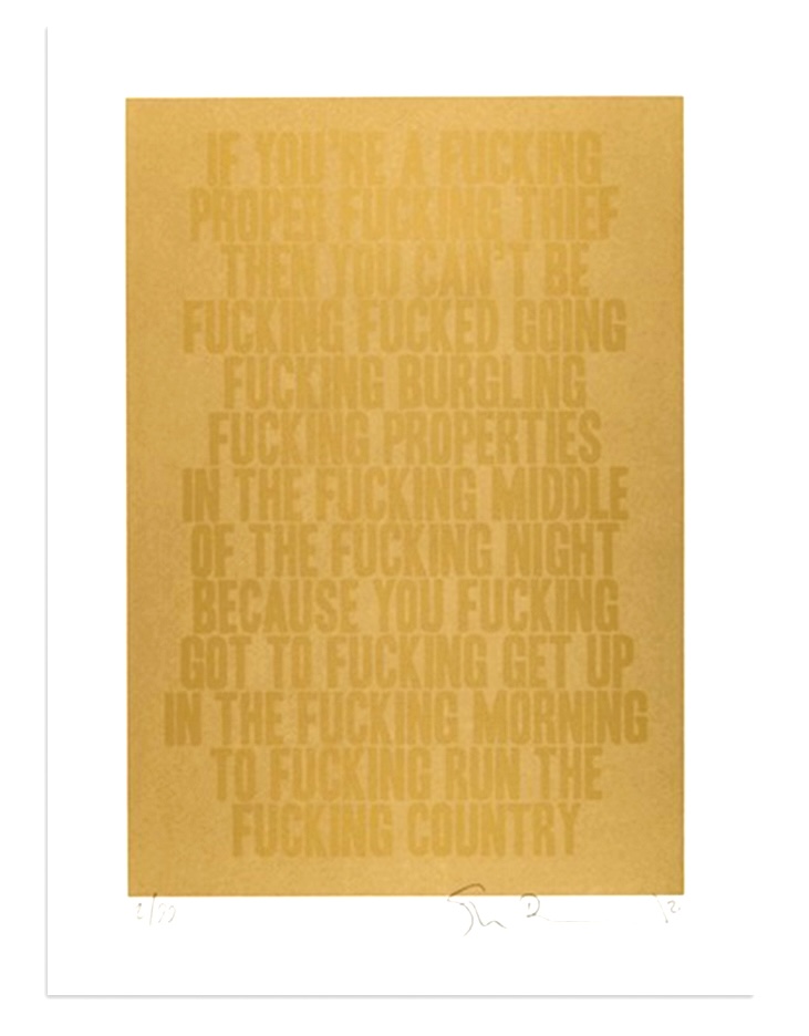 The artist and writer best known for the Radiohead artwork he’s created with singer Thom Yorke contributed a screen print of Fuckin Thief (Golden Words)