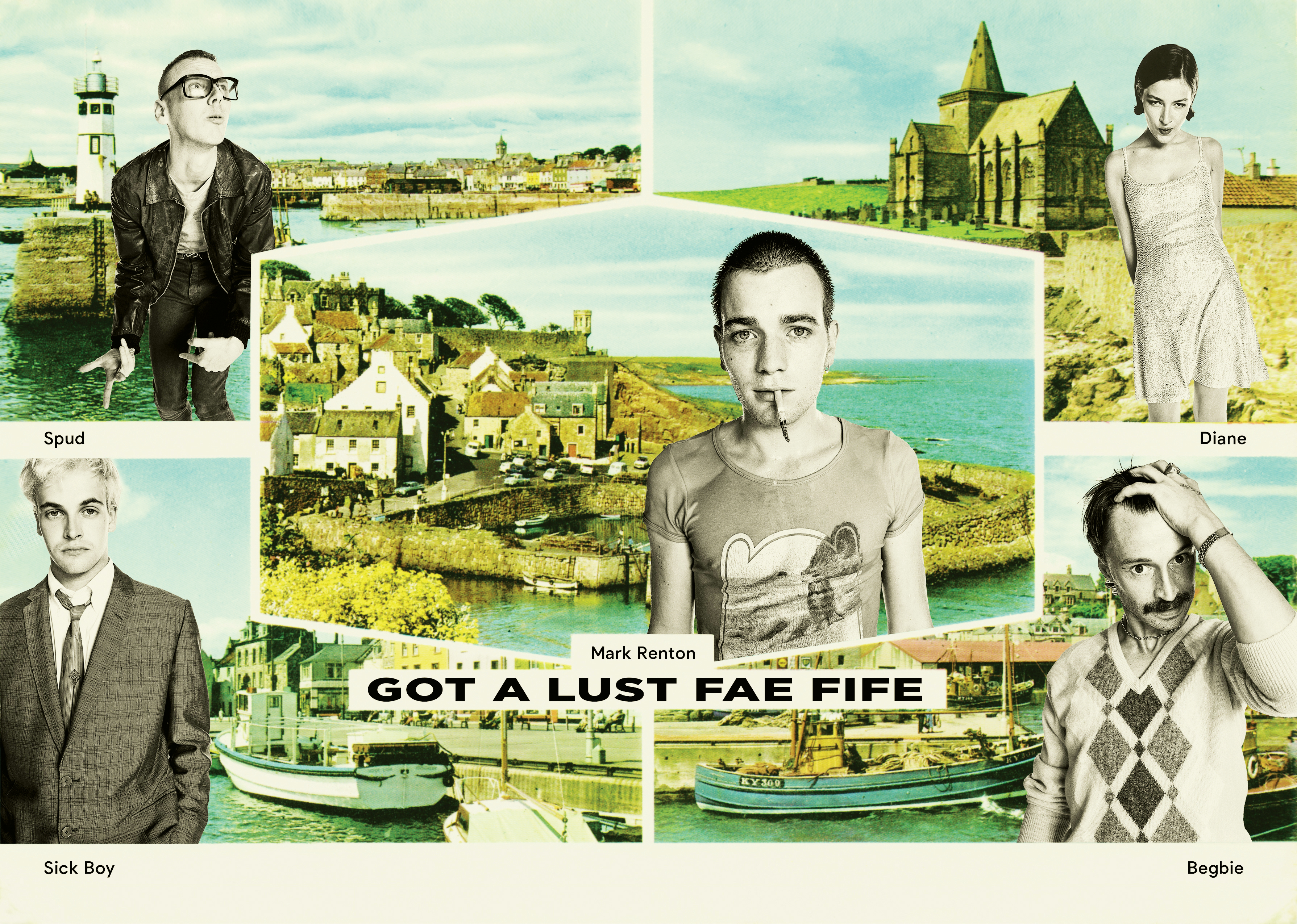While the poster was destined to become a classic, he hadn’t seen the film before designing it, instead drawing from the script and Irvine Welsh’s novel.