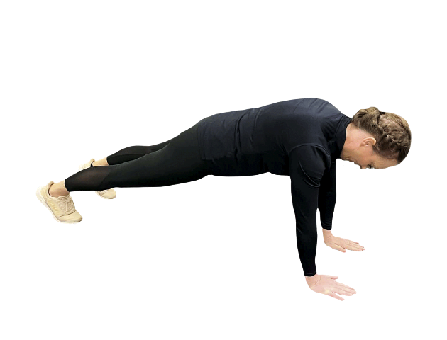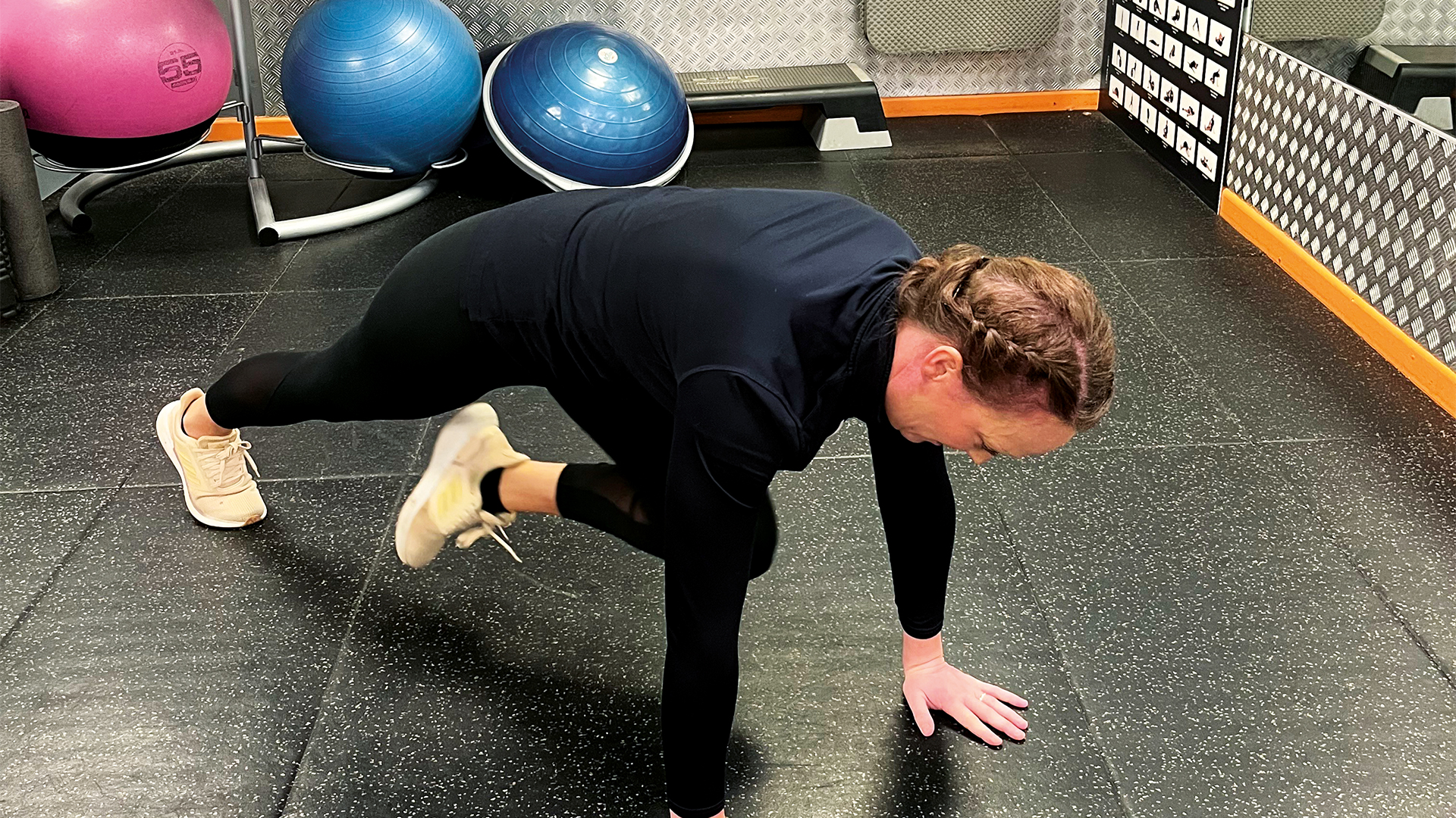 Top tips: Keep a flat back by holding your tummy up and your body weight over your hips. You can use a mirror or film yourself on your phone to check your form.