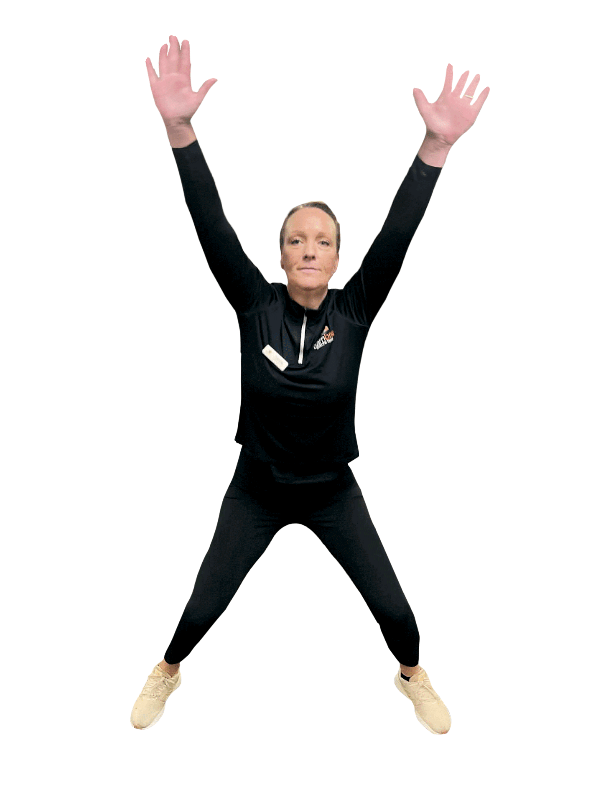 Top tips: Throw arms up and legs out, then bounce them back together as fast as you can.