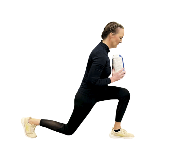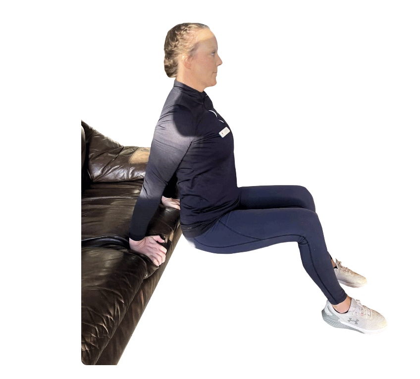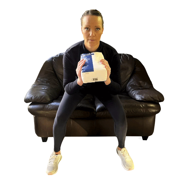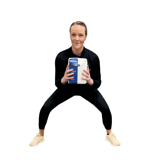 Top tips:  For the correct posture, brace your abs, and make sure you have no pain in your lower back. Add weight as you progress, for example a bag of flour.
