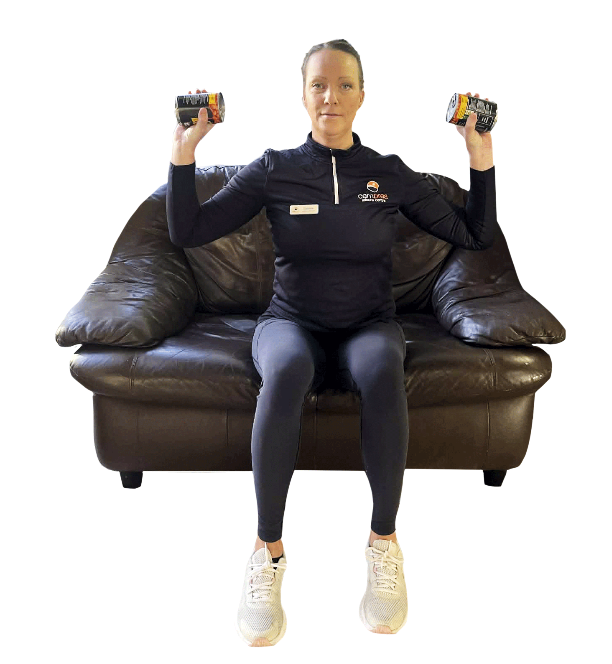 Top tips: Make sure your range and form are good each rep. If momentum is taking over, you won’t get what you need out of it. You can add extra weight to make it more challenging – try a tin of beans or two.
