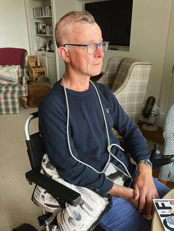 I lost my independence on June 2. That’s how long it takes to completely close your life down. The paralysis set in, so I have very limited movement on my right side. I used to drive an Audi Q3. I now have an electric wheelchair and a Motability scooter. Surreal doesn’t really cover it. I’m 61, I was 65 kilos. I was fit and healthy. I love good, fresh food. I haven’t abused my body. And it has completely devastated my life. Over the course of the last four or five years, I’ve been unwinding my non-executive roles to retire. I was looking forward to winding down. I’m passionate about gardening. I love fresh air, cycling, walking. I’m a very average golfer. I was looking forward to all of those things.