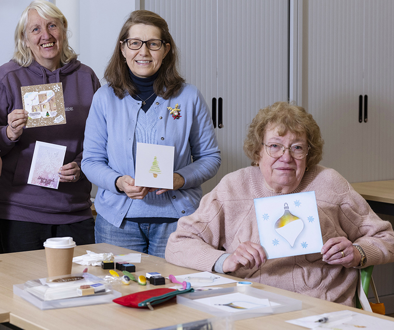 (L-r) Jackie, Carol and Eve show off their Christmas cards. Image: Rebecca Lupton