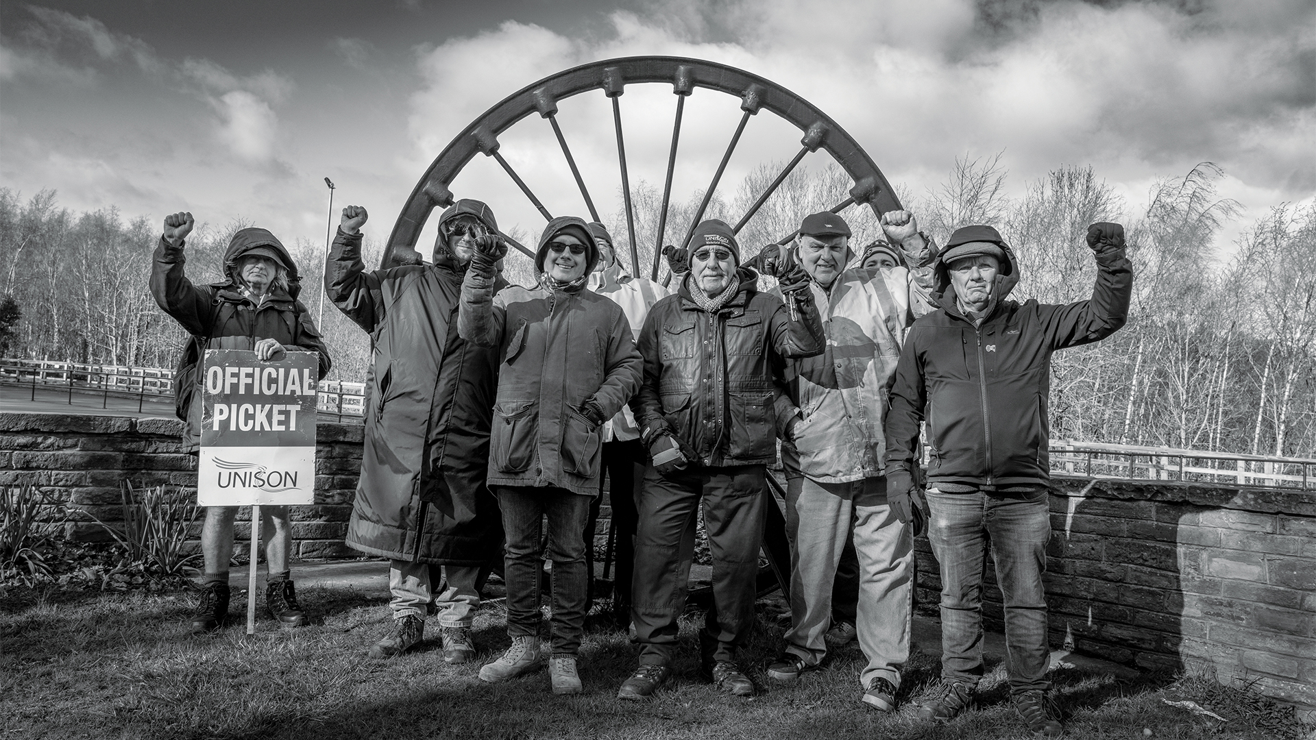 Striking workers on the picket line outside the National Coal Mining Museum in Wakefield. Image: Marc Davenant