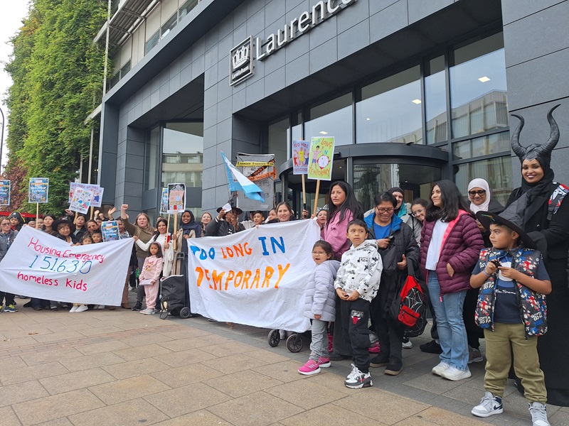 More than 100 activists and homeless families occupied a London council housing office all morning on Halloween in a bid to convince the authority to fix its ‘houses of horror’.