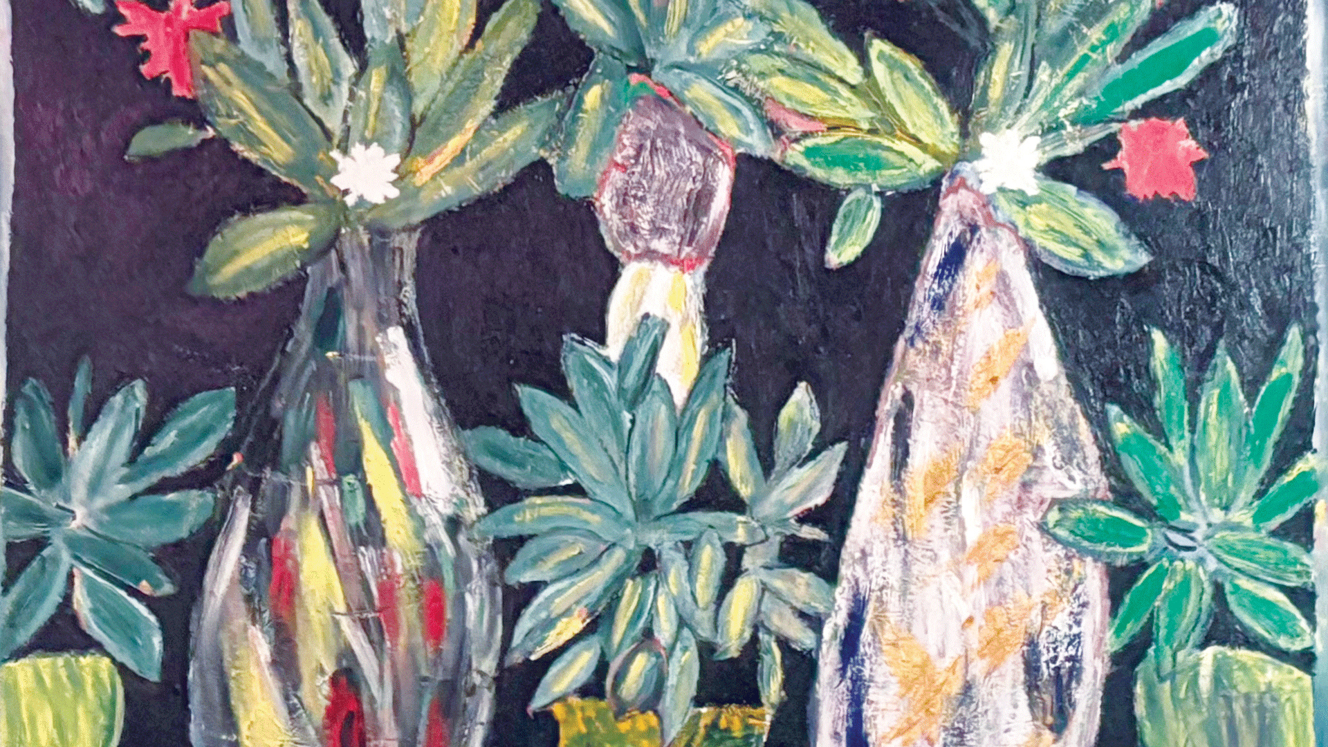 My made-up flower piece that you see below is physically heavy, and for many people who’ve seen it, it looks forceful. And real. Even if every plant and vase is invented. In my Anteros studio, often late at night or early in the morning, I would be conjuring up these imaginary plants. For me it’s a brilliant obsession. But as I paint I am not entirely cut off from the world. Trump’s been big in my mind sometimes while I paint. Or the skilfulness, or otherwise, of our relatively newly elected government. How is Starmer doing, I think as I paint an imaginary glass vase.