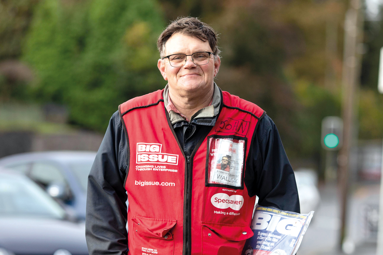John Williams has been selling Big Issue on and off for more than a decade. These days you’ll find him in Swansea city centre, where he’s been working his pitch for the last two years. His work depends on something most people barely think about: a pair of glasses.
